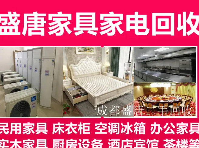 成都盛唐二手高价回收·回收二手桌椅|会议桌回收|空调回收,家具回收,床衣柜回收电器冰箱,办公家具,厨房设备,酒店宾馆